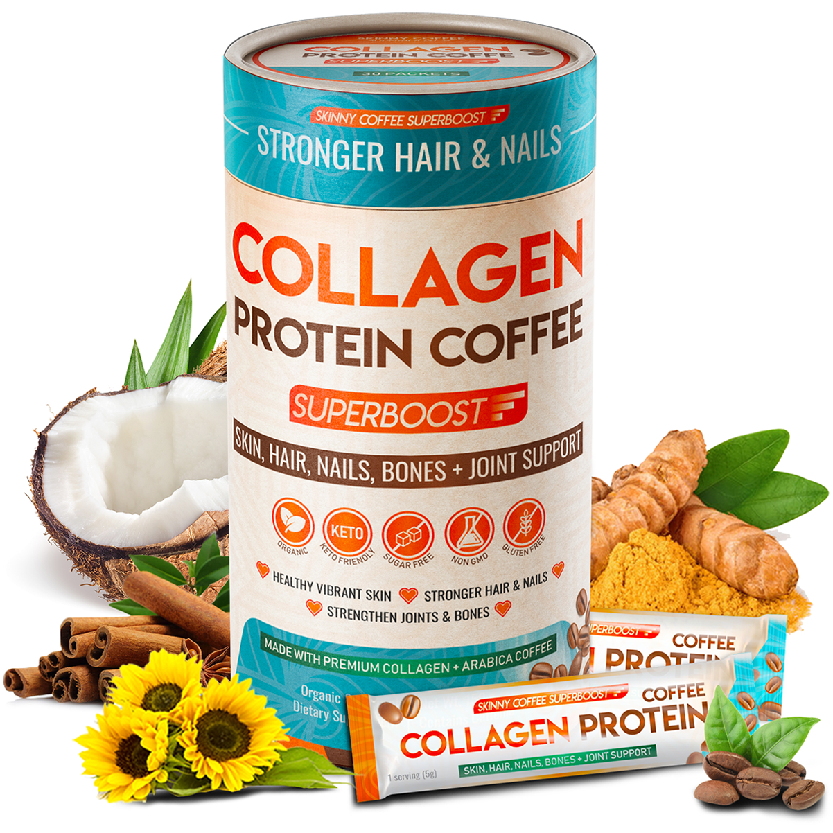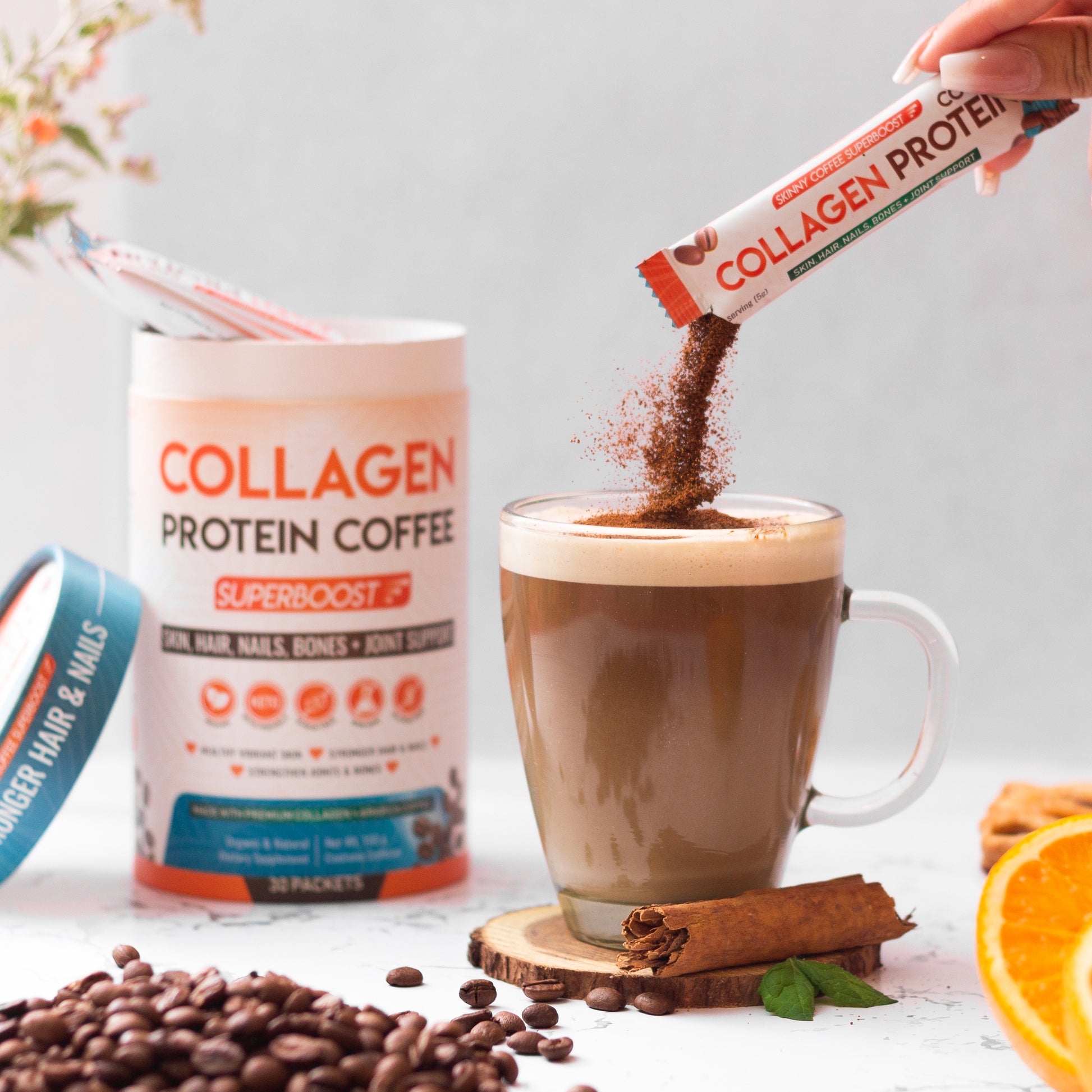 ¡El colágeno en el cuerpo disminuye drásticamente después de los 25 años! Detén la pérdida de colágeno ahora con Collagen Protein Coffee que promueve una piel joven y brillante, fortalece cabello y uñas, reduce el dolor en las articulaciones y ayuda a perder peso.